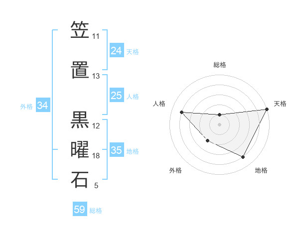 笠置 黒曜石さんの総格は59画の1点!