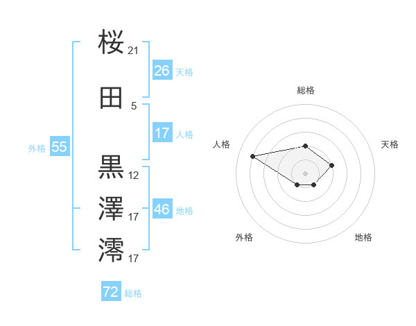 桜田 黒澤澪さんを姓名の画数から五運を鑑定