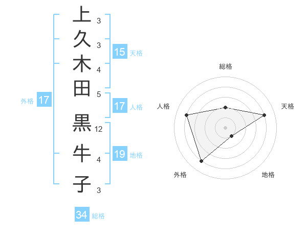 上久木田 黒牛子さんを姓名の画数から五運を鑑定