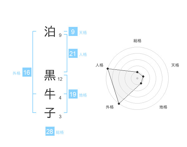 泊 黒牛子さんを姓名の画数から五運を鑑定