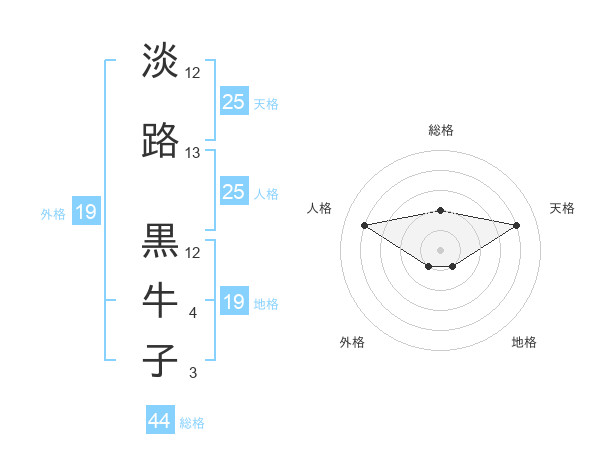淡路 黒牛子さんを姓名の画数から五運を鑑定