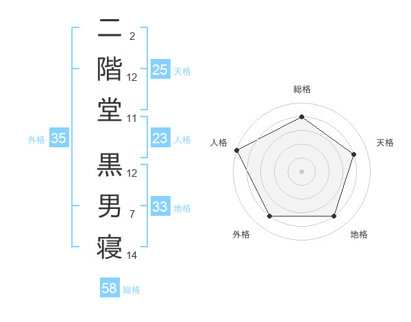 二階堂 黒男寝さんの天格は25画の4点!