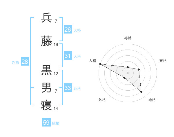兵藤 黒男寝さんの名前の鑑定結果は!