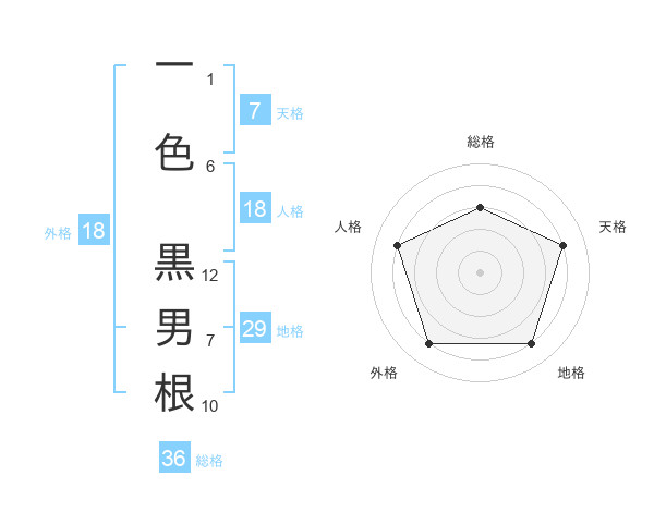 一色 黒男根さんを姓名の画数から五運を鑑定