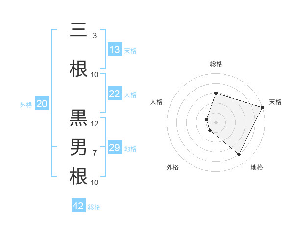 三根 黒男根さんを姓名の画数から五運を鑑定