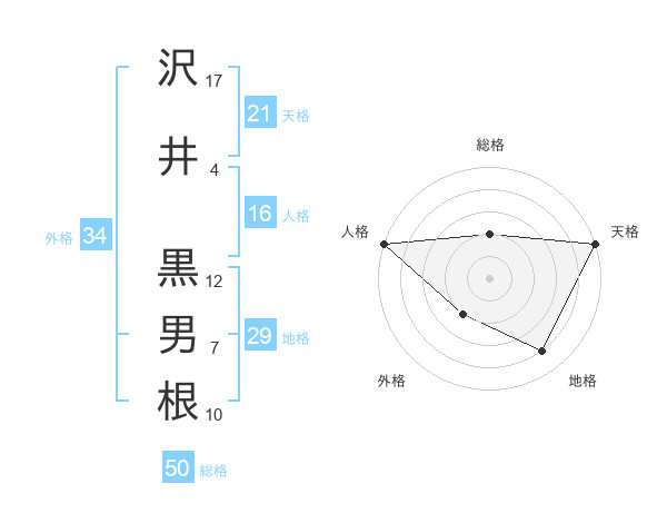 沢井 黒男根さんを姓名の画数から五運を鑑定