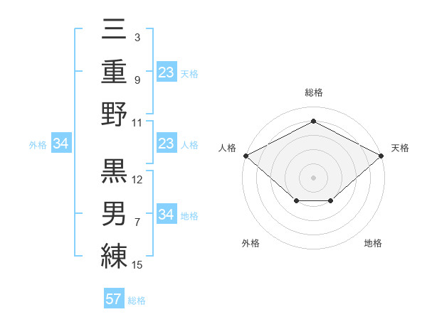 三重野 黒男練さんを姓名の画数から五運を鑑定
