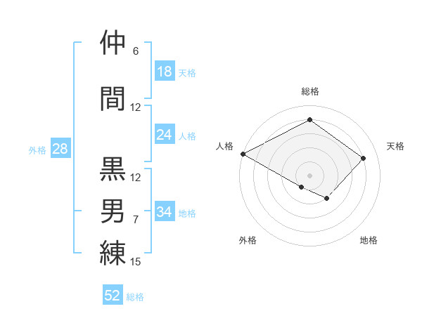 仲間 黒男練さんを姓名の画数から五運を鑑定