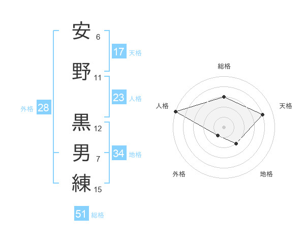 安野 黒男練さんを姓名の画数から五運を鑑定