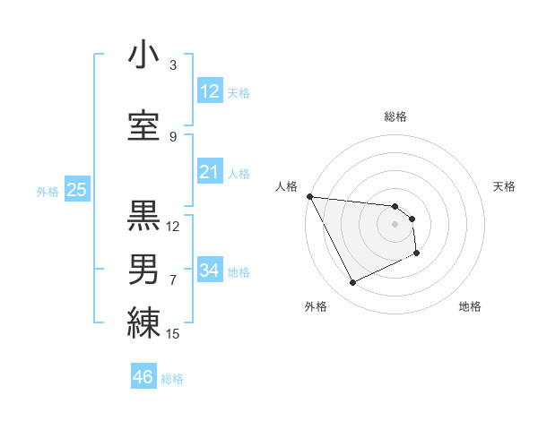 小室 黒男練さんを姓名の画数から五運を鑑定
