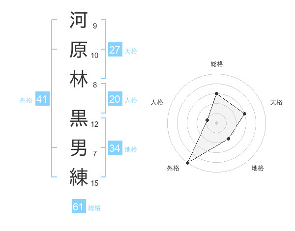 河原林 黒男練さんを姓名の画数から五運を鑑定
