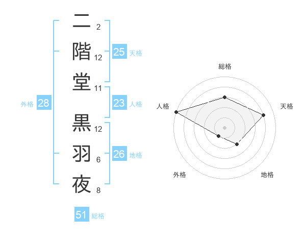 二階堂 黒羽夜さんを姓名の画数から五運を鑑定