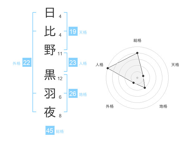 日比野 黒羽夜さんを姓名の画数から五運を鑑定