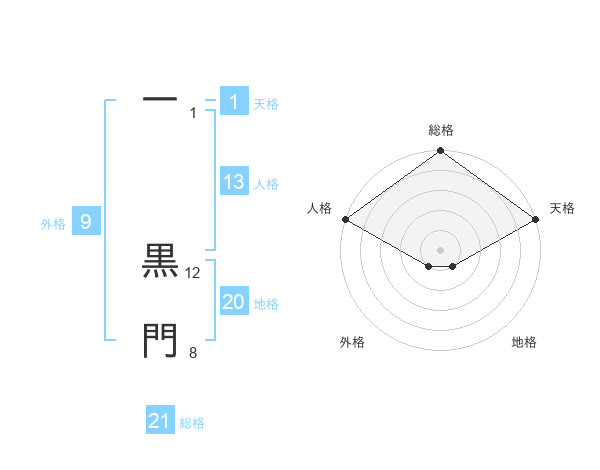 一 黒門さんの総格は21画の5点!