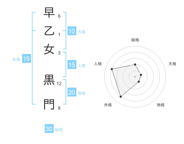 早乙女 黒門さんを姓名の画数から五運を鑑定