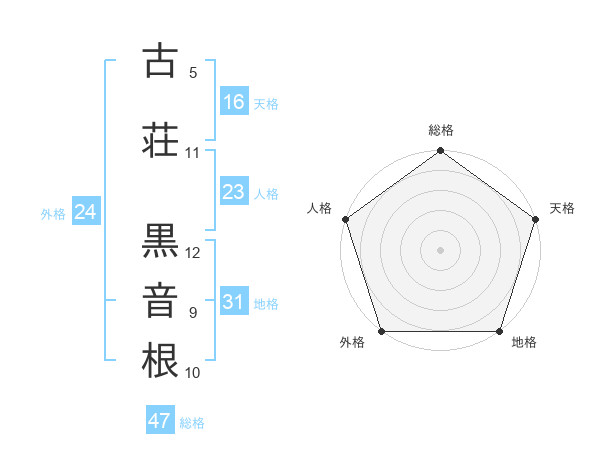 古荘 黒音根さんの総格は47画の5点!