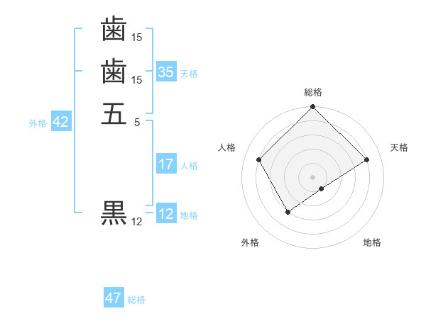 歯歯五 黒さんの総格は47画の5点!