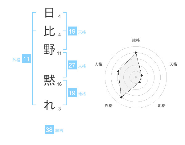 日比野 黙れさんを姓名の画数から五運を鑑定