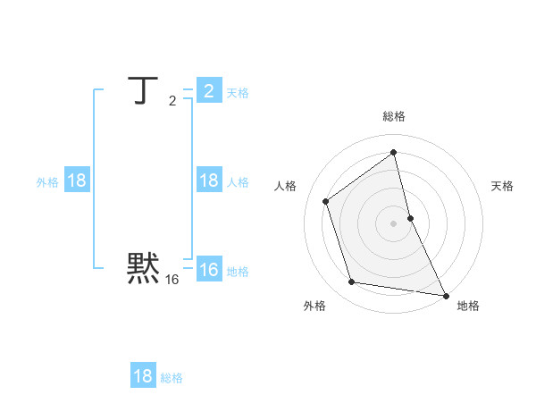 丁 黙さんの外格は18画の4点!