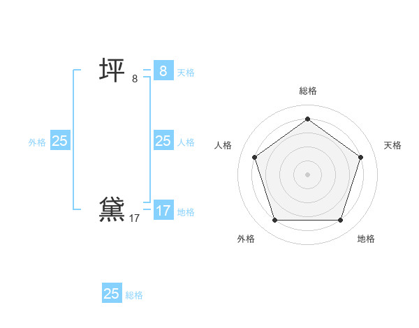 坪 黛さんの総格は25画の4点!