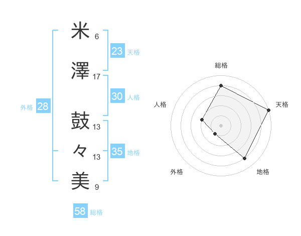 米澤 鼓々美さんを姓名の画数から五運を鑑定