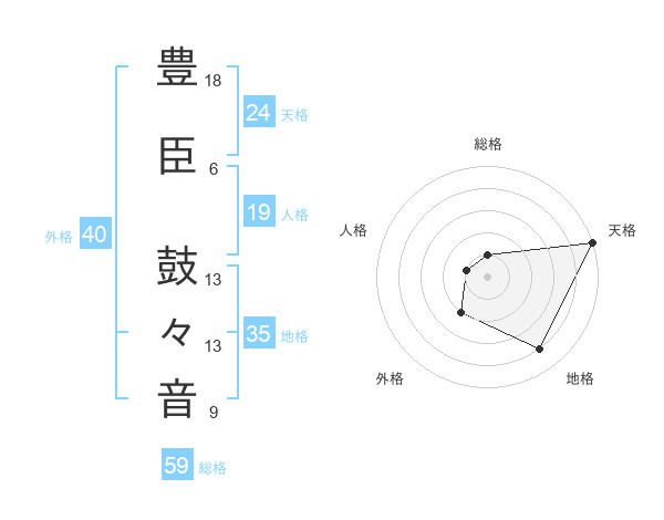 豊臣 鼓々音さんを姓名の画数から五運を鑑定