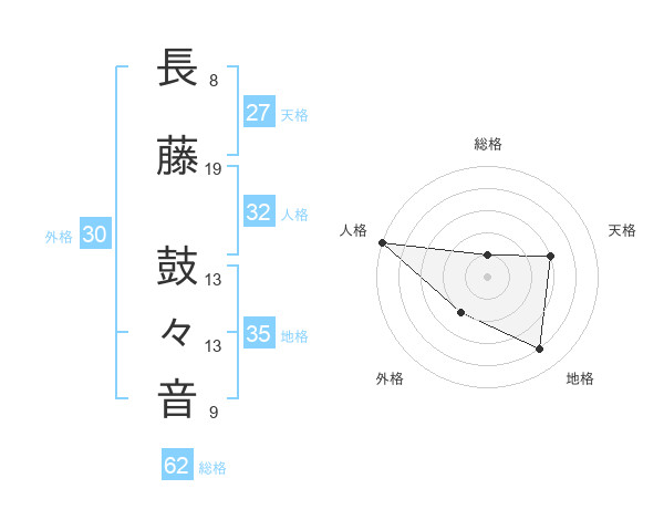 長藤 鼓々音さんの地格は35画の4点!