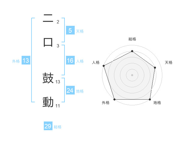 二口 鼓動さんを姓名の画数から五運を鑑定