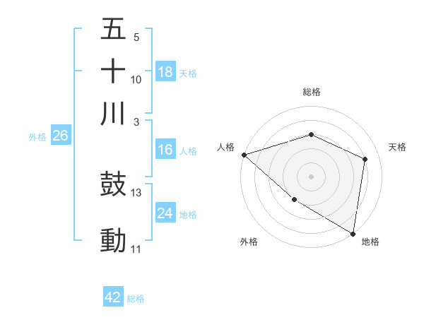 五十川 鼓動さんを姓名の画数から五運を鑑定