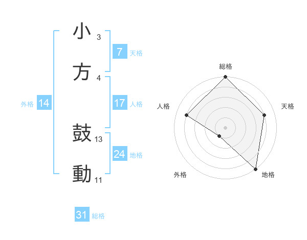 小方 鼓動さんを姓名の画数から五運を鑑定