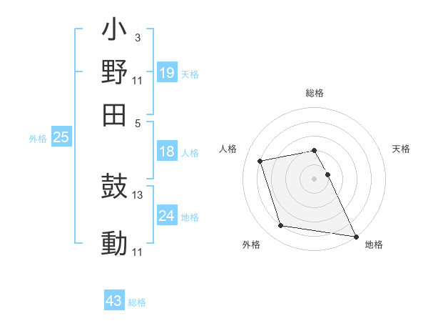 小野田 鼓動さんを姓名の画数から五運を鑑定