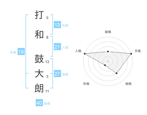 打和 鼓大朗さんを姓名の画数から五運を鑑定