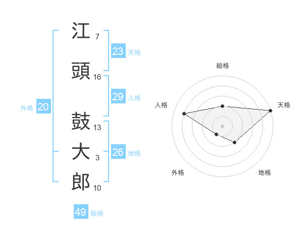 江頭 鼓大郎さんを姓名の画数から五運を鑑定
