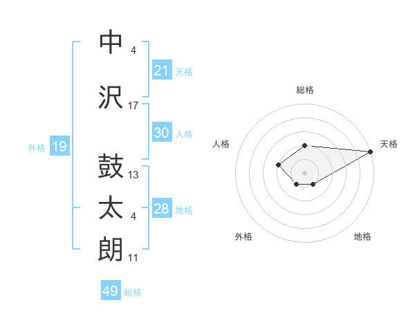 中沢 鼓太朗さんの天格は21画の5点!