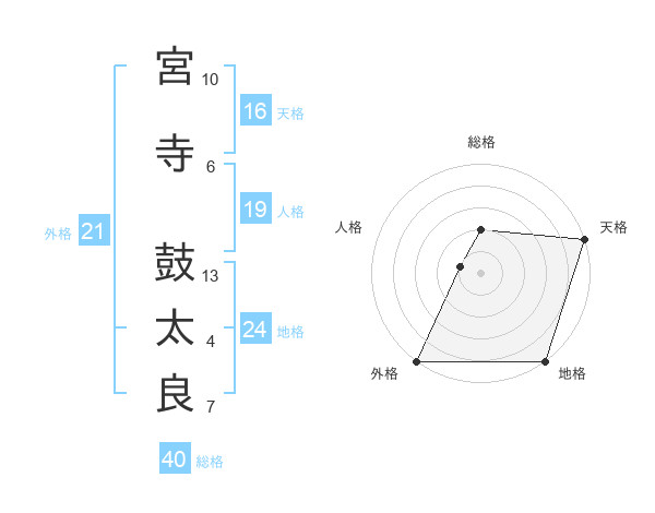 宮寺 鼓太良さんを姓名の画数から五運を鑑定