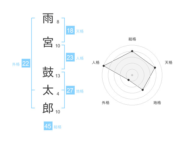 雨宮 鼓太郎さんの総格は45画の4点