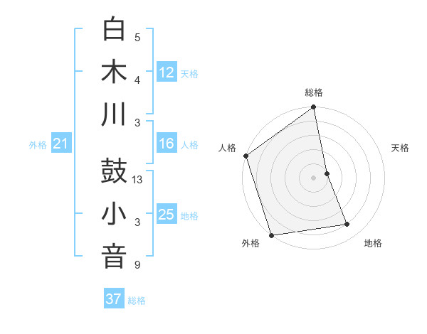 白木川 鼓小音さんを姓名の画数から五運を鑑定