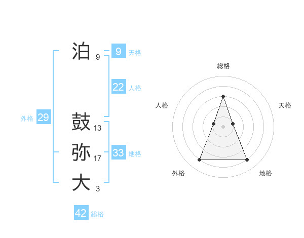 泊 鼓弥大さんを姓名の画数から五運を鑑定