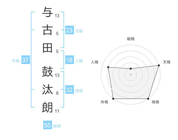 与古田 鼓汰朗さんを姓名の画数から五運を鑑定