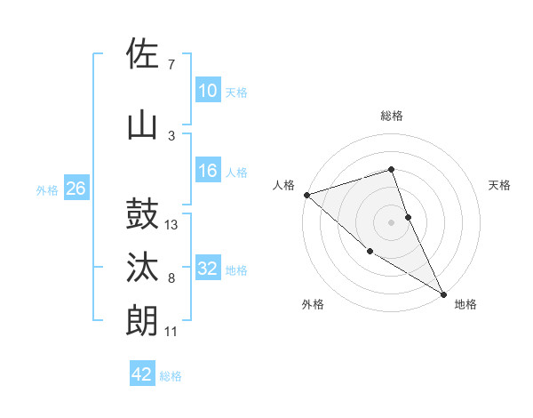 佐山 鼓汰朗さんを姓名の画数から五運を鑑定
