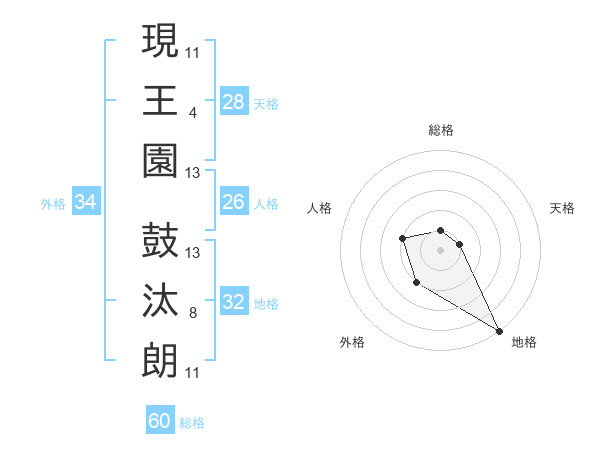 現王園 鼓汰朗さんの総格は60画の1点!