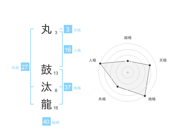 丸 鼓汰龍さんの地格は37画の5点!
