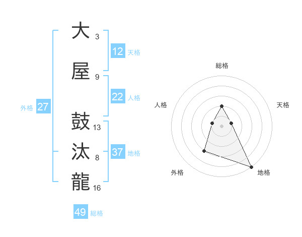 大屋 鼓汰龍さんを姓名の画数から五運を鑑定