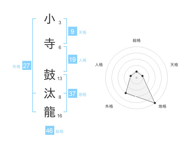 小寺 鼓汰龍さんを姓名の画数から五運を鑑定