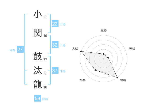 小関 鼓汰龍さんを姓名の画数から五運を鑑定