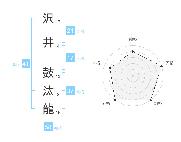 沢井 鼓汰龍さんを姓名の画数から五運を鑑定