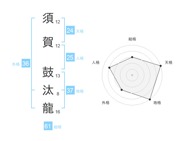 須賀 鼓汰龍さんを姓名の画数から五運を鑑定