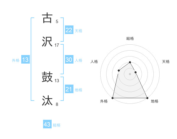 古沢 鼓汰さんの外格は13画の5点!