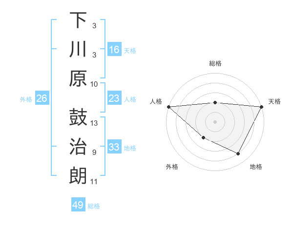 下川原 鼓治朗さんを姓名の画数から五運を鑑定