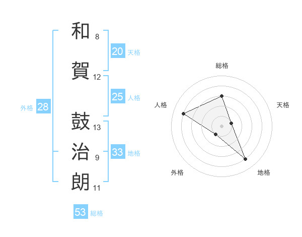 和賀 鼓治朗さんの総格は53画の3点!